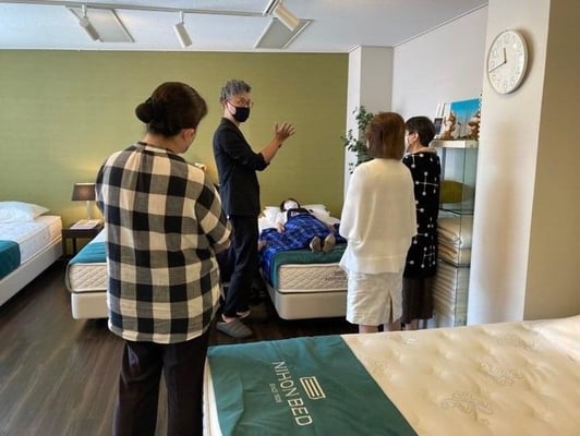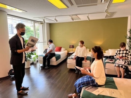 セミナーの最後には、皆さん5つのマットレスを体感しながら講師の小杉さんからのアドバイスのもと自分に合うマットレスを探されていました。