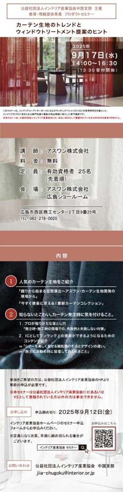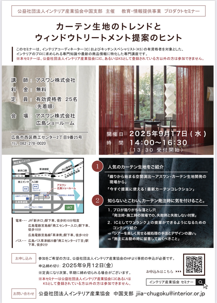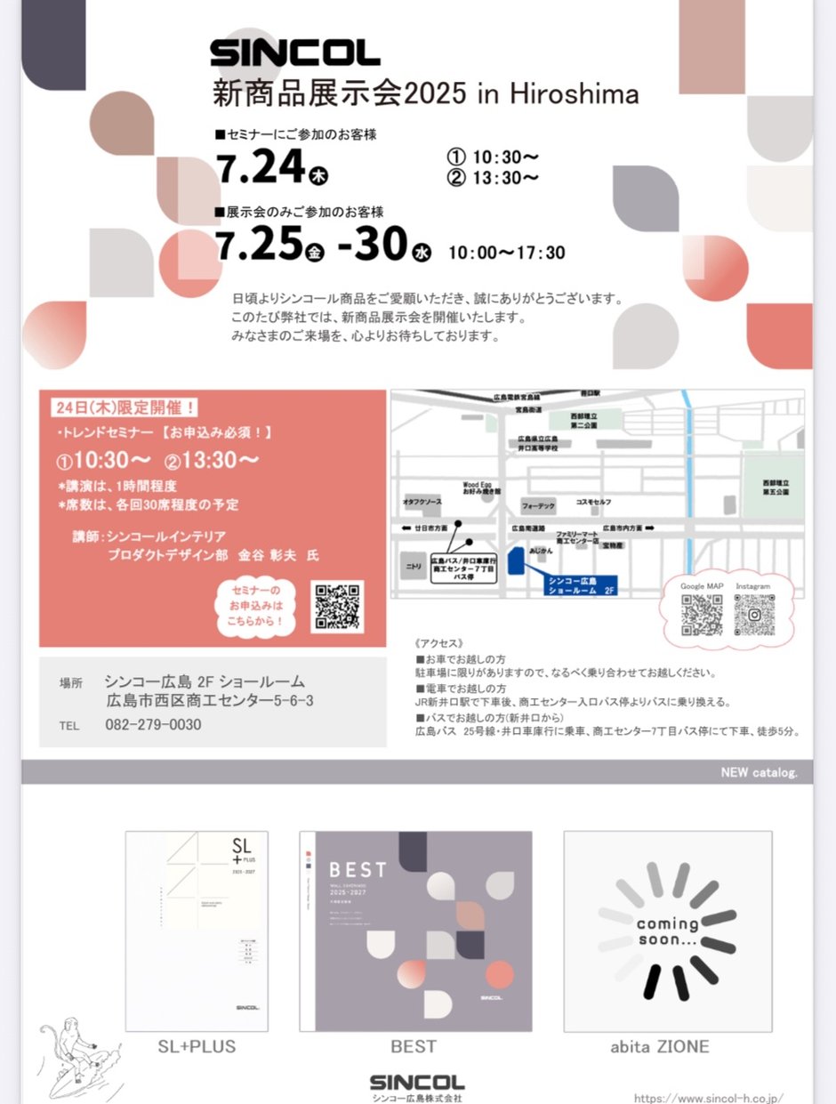 そして、広島ショールーム展示会のみとなりますが、 7月24日(木)限定でトレンドセミナーを開催いたします。