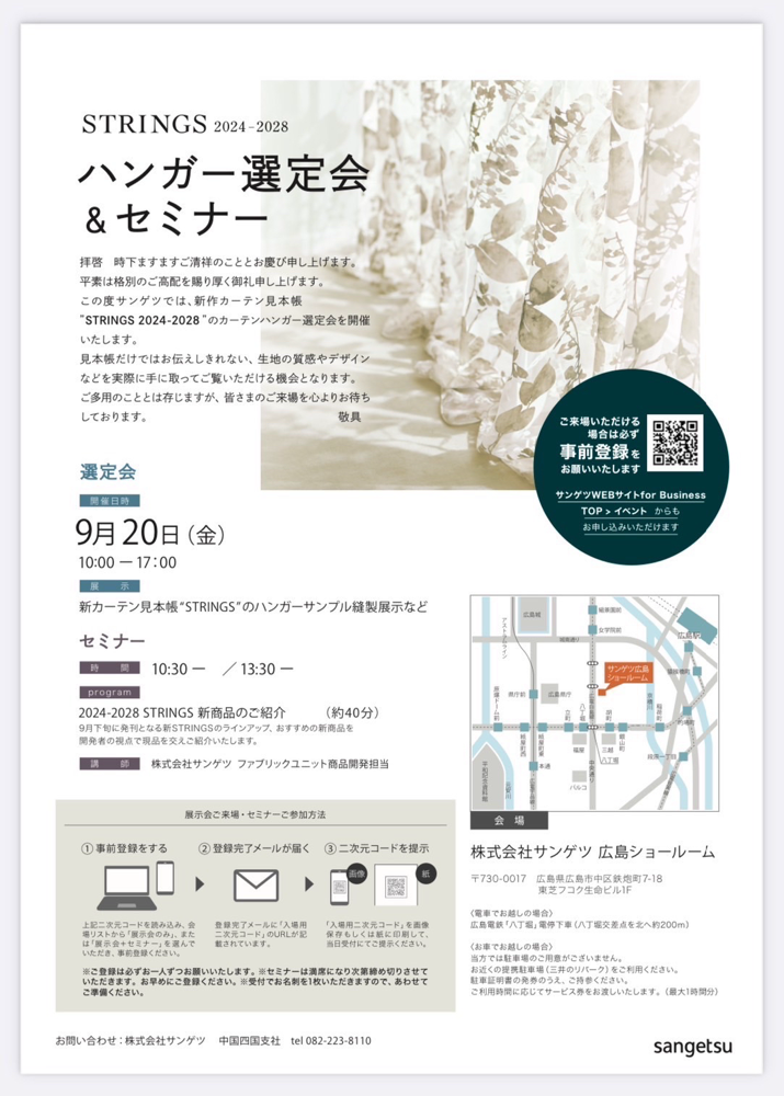 お申し込みは広島展示会のご案内状に記載しておりますQRコードからお申し込みください。