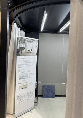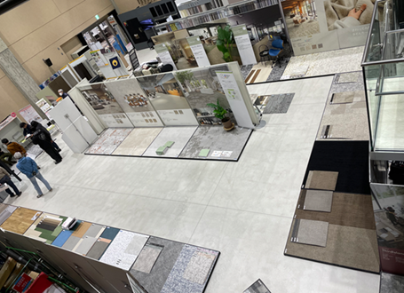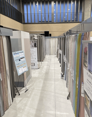クロス【 BEST 】の新柄商品のパネル展示やカーテン【 abita ZIONE 】の縫製サンプル展示などを企画しております。